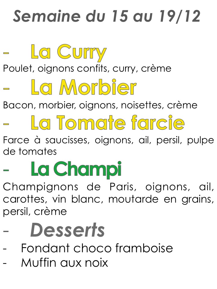 Menu de la semaine Venez découvrir les sauces de la semaine ! Et bien sûr, toute la semaine, la sauce Basic : Dés de jambon, crème, emmental ! 15 avril 2016 etpateseer1